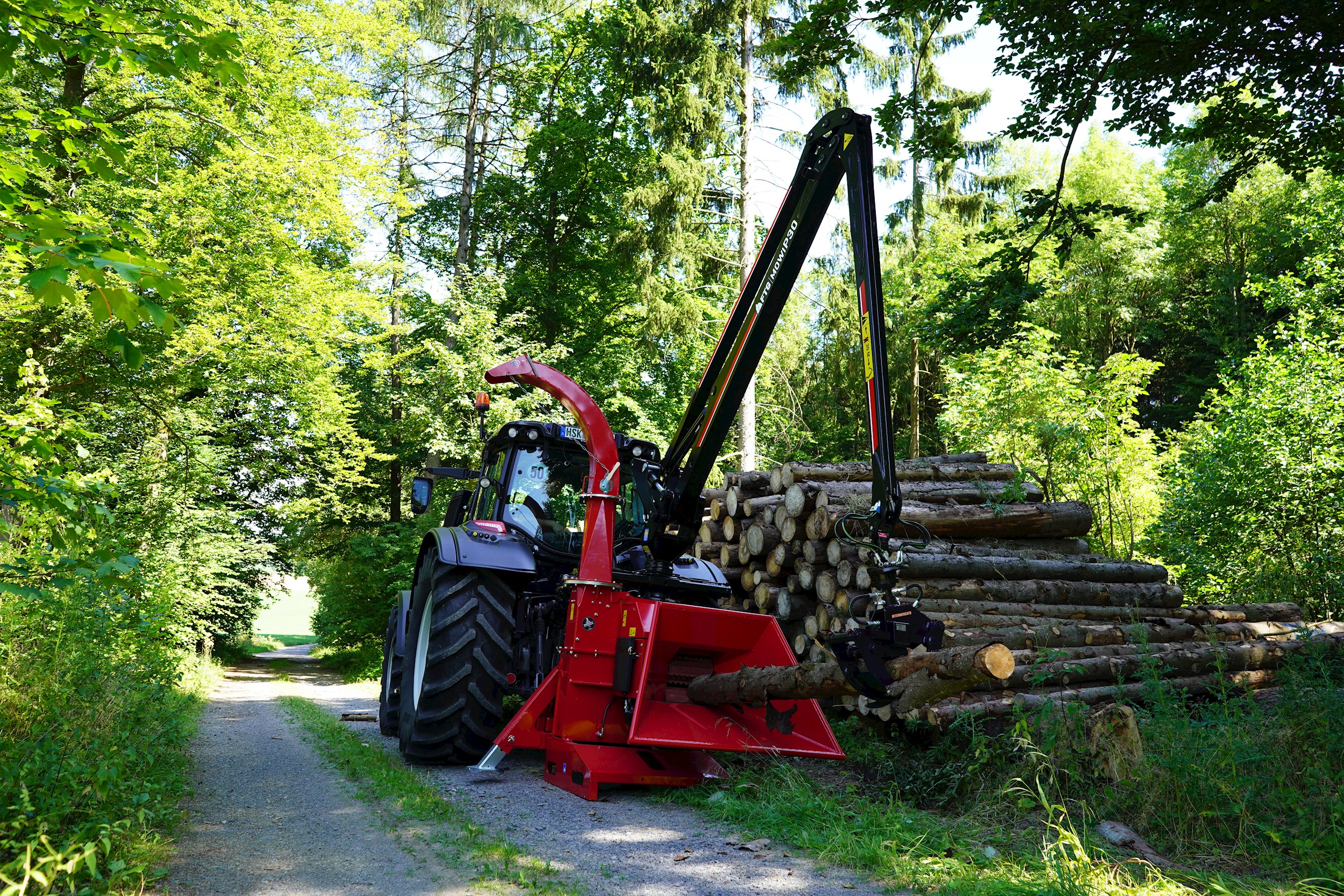 - TP 250 PTO is a disc chipper with hydraulic infeed - efficient for clearing and chipping of branches and whole trees up to 250 mm in diameter